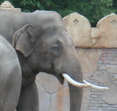 Elefantenbulle Mekong aus Leipzig mit seinen Stoßzähnen aus Elfenbein